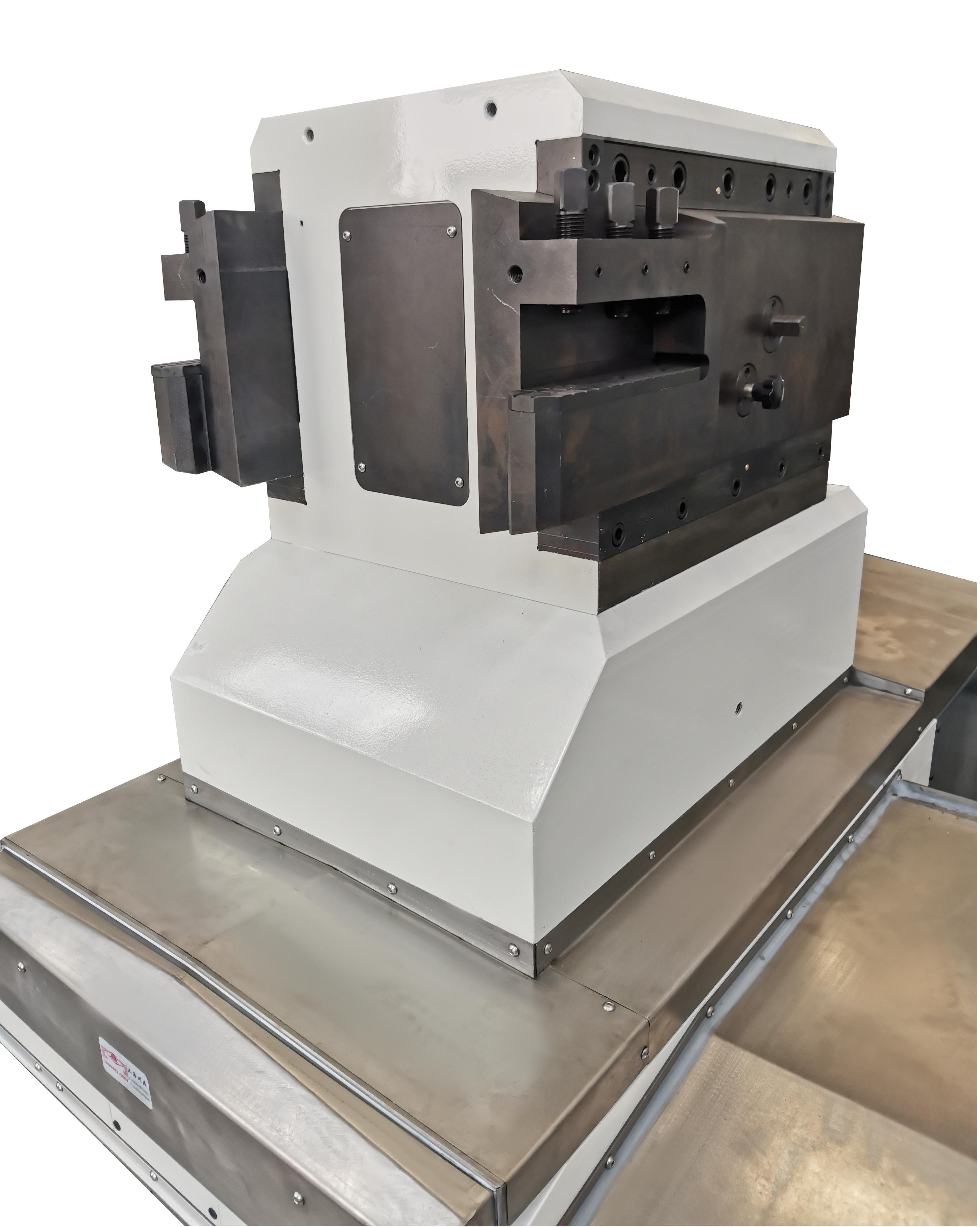 CK84100 sústruh je vybavený inovatívnou štruktúrou 4 1 Guideway: Štyri vodorovné obdĺžnikové vodiace cesty zabezpečujú vysokú presnú polohu sedla a chvosta, zatiaľ čo predný vertikálny pomocný sprievodca výrazne zvyšuje tuhosť, zlepšuje kapacitu krútiaceho momentu a životnosť strojového náradia. Referenčné vodiace cesty sa podrobia úplnému ultrafrekvenčnému ochladzovaniu a sú vybavené importovanými mäkkými prúžkami v kombinácii s stupňovitým tesniacim dizajnom, ktorý efektívne izoluje čipy a vniknutie chladiacej kvapaliny, čo zaručuje dlhodobú presnosť a stabilitu.
